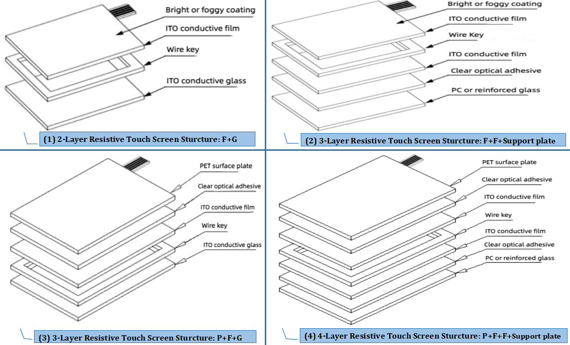 Nous pouvons personnaliser la structure à 2/3/4 couches de l'écran tactile résistif, la taille de 2,4'' à 21,5''. Bienvenue, envoyez votre projet pour notre évaluation !