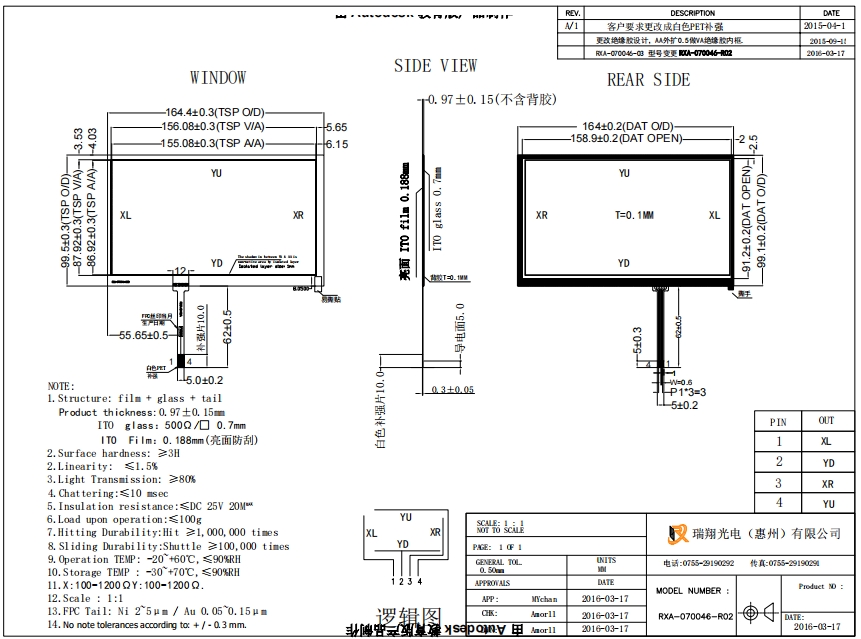 Le materie prime del touch screen resistivo a 4 fili di Reshine Display sono tutte di marchi ben noti in Cina e sono protette mediante accoppiamento a pressione FDS con pellicole protettive di diversi produttori.