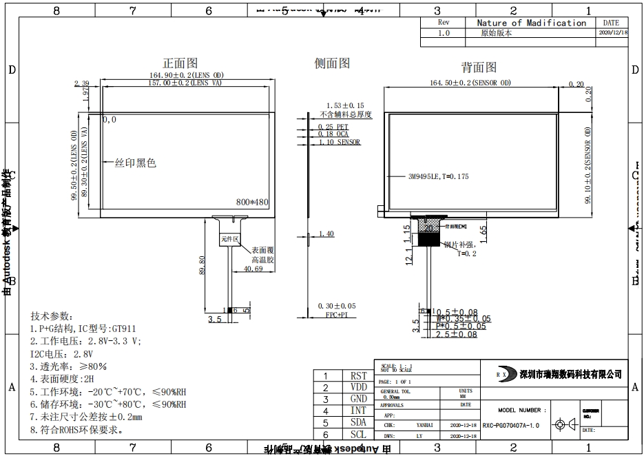 7 インチ静電容量式タッチ パネル スクリーンの技術パラメータ: